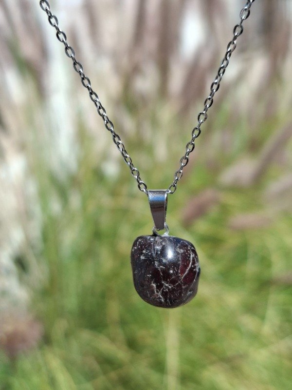 El granate se considera una piedra de 1º chakra, con una energía vigorosa. Ayuda a enraizar con fuerza, lo que favorece la seguridad y la firmeza de carácter. Potencia la líbido y refuerza la zona de los órganos sexuales y de reproducción. Es indicado para limpiar, purificar y fortalecer la sangre, siendo de ayuda en casos de anemia, quimioterapia e infecciones.